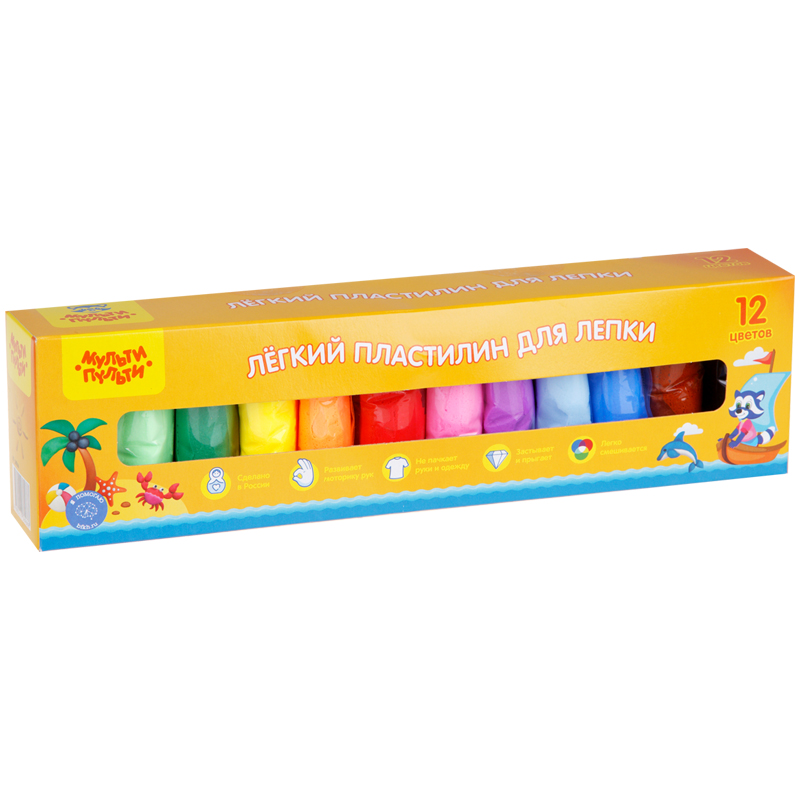 Легкий пластилин для лепки Мульти-Пульти, 12 цветов, 120г, картон
