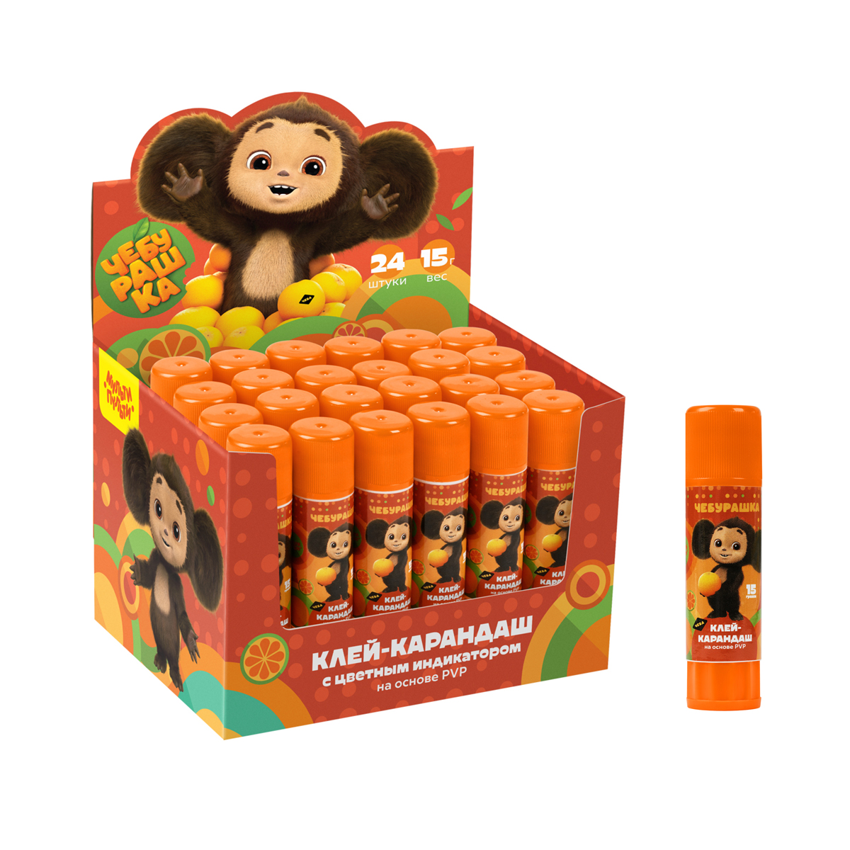 Клей-карандаш Мульти-Пульти "Чебурашка", 15г, с цветным индикатором, ПВП