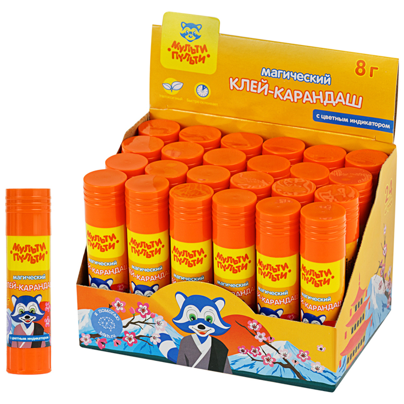 Клей-карандаш Мульти-Пульти "Енот в Японии", 08г, с цветным индикатором, ПВП