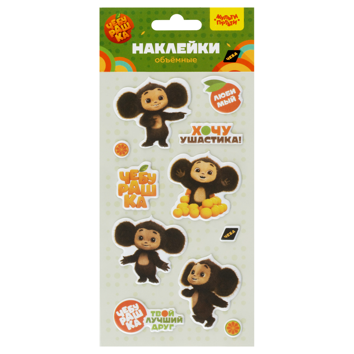 Наклейки объемные Мульти-Пульти "Чебурашка", 11 наклеек