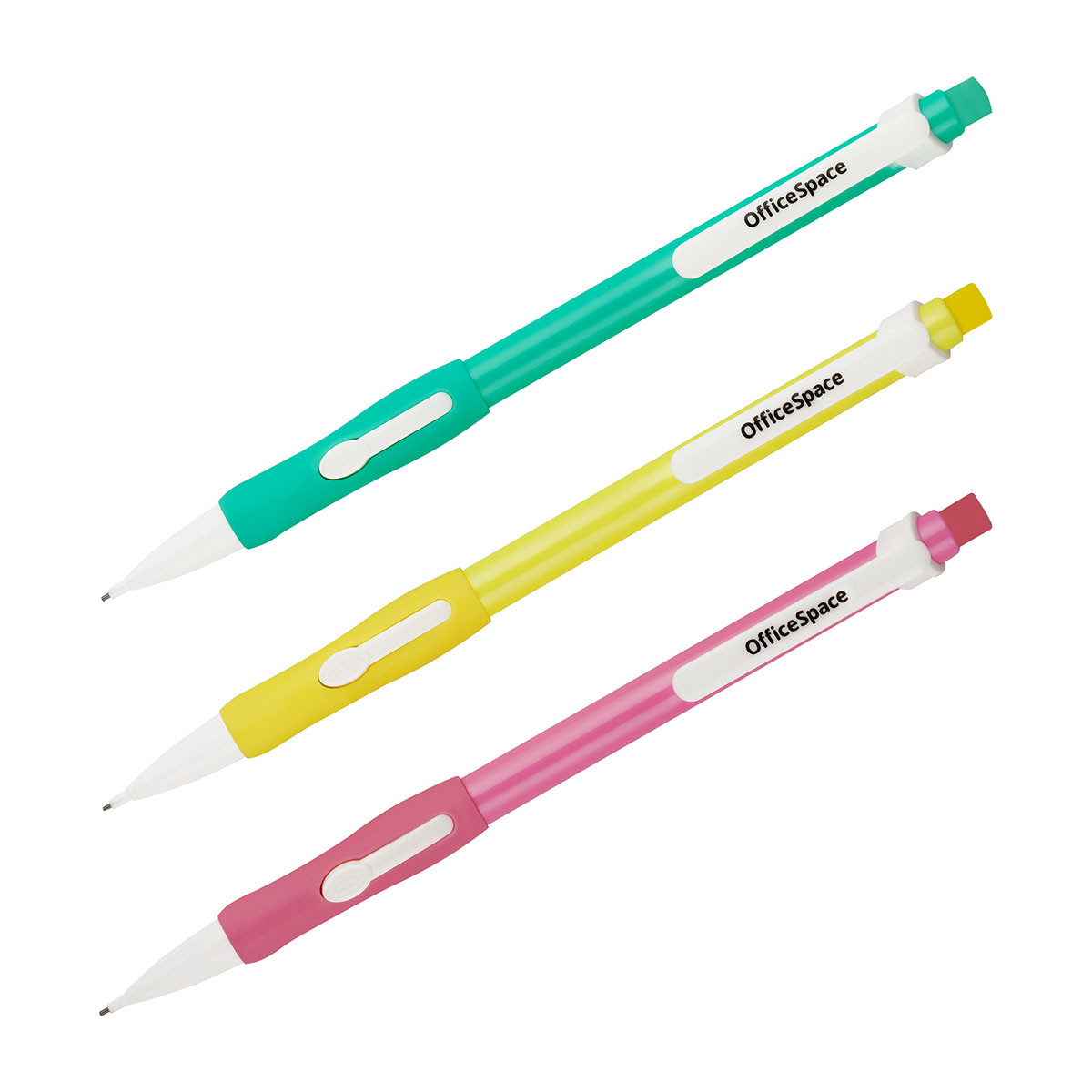 Набор карандашей механических OfficeSpace, 0,5мм, с ластиком, ассорти, 3шт (фасовка)
