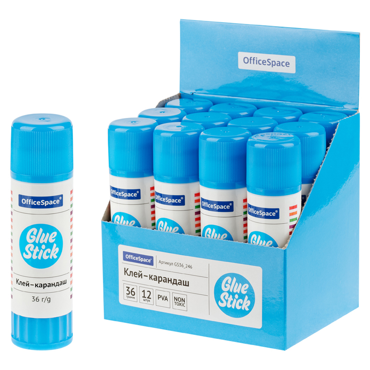 Клей-карандаш OfficeSpace, 36г, дисплей, ПВА