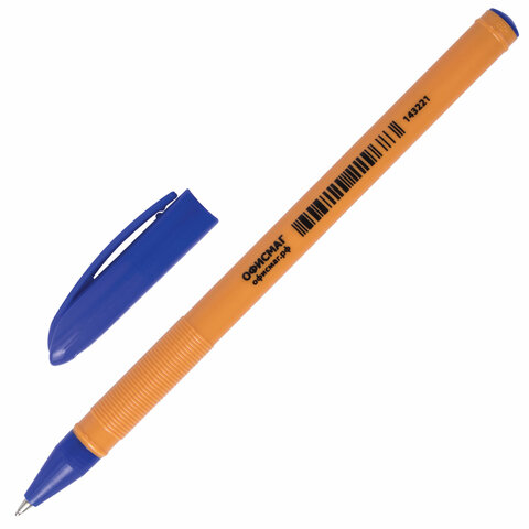 Ручка шариковая масляная ОФИСМАГ, СИНЯЯ, корпус оранжевый, узел 0,7 мм, линия письма 0,35 мм, 143221