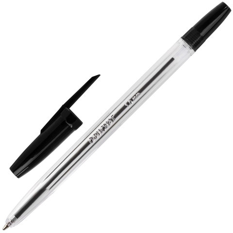 Ручка шариковая ОФИСМАГ "Line", ЧЕРНАЯ, корпус прозрачный, узел 1 мм, линия письма 0,5 мм, 141879