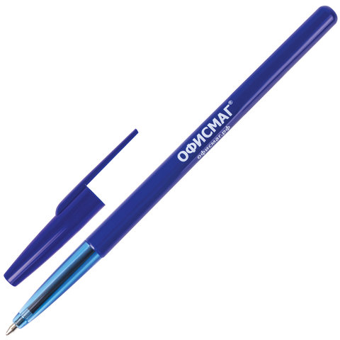 Ручка шариковая ОФИСМАГ "Офисная", СИНЯЯ, корпус синий, узел 1 мм, линия письма 0,5 мм, 141117