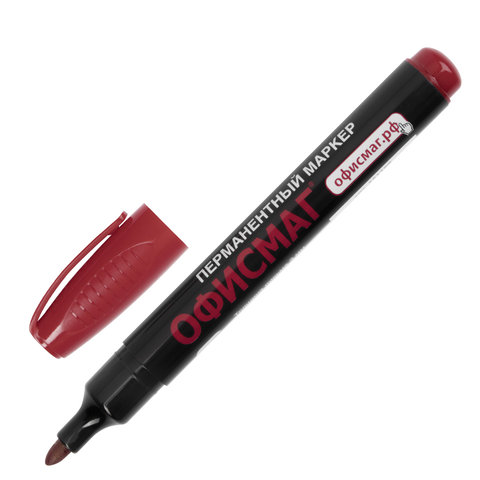 Маркер перманентный ОФИСМАГ, КРАСНЫЙ, круглый наконечник, 3 мм, с клипом, 151199