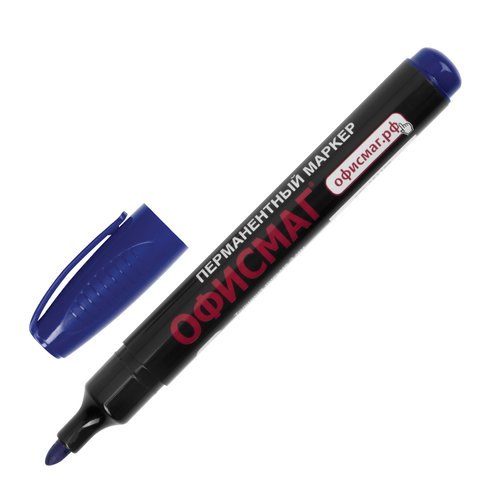Маркер перманентный ОФИСМАГ, СИНИЙ, круглый наконечник, 3 мм, с клипом, 151198