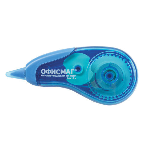 Корректирующая лента ОФИСМАГ N1, 5 мм х 6 м, прозрачно-синий корпус, механизм перемотки, блистер, 272659
