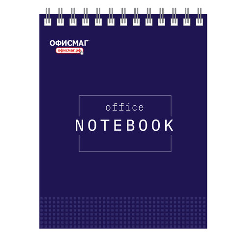 Блокнот А5 146х205 мм, 80 л., гребень, картон, жесткая подложка, клетка, ОФИСМАГ, синий, 129867