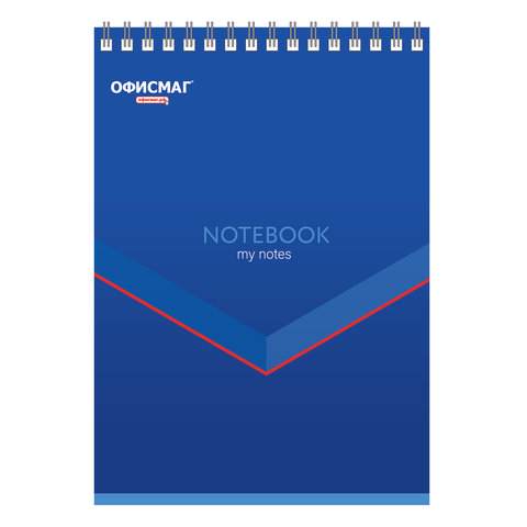 Блокнот МАЛЫЙ ФОРМАТ А6 108х146 мм, 48 л., гребень, картон, клетка, ОФИСМАГ, синий, 129870