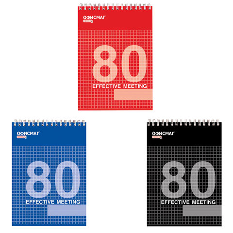 Блокнот А5 146х205 мм, 80 л., гребень, мелованная картонная обложка, клетка, ОФИСМАГ, 3 вида, 123021