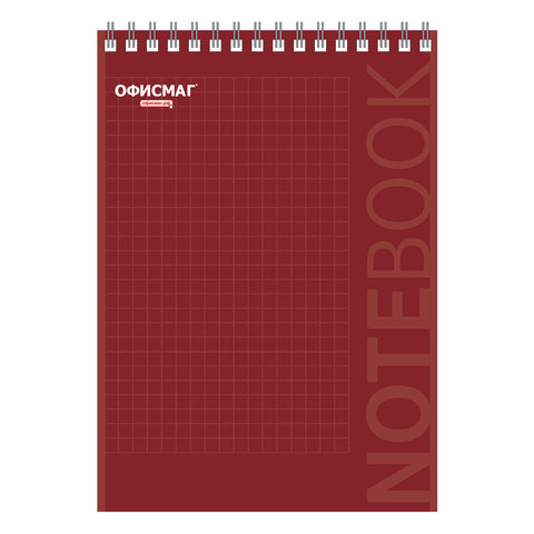 Блокнот А5 146х205 мм, 80 л., гребень, картон, подложка, клетка, ОФИСМАГ, красный, 129869