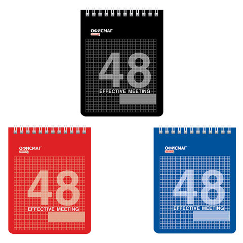 Блокнот МАЛЫЙ ФОРМАТ А6 108х146 мм, 48 л., гребень, мелованная картонная обложка, клетка, ОФИСМАГ, 3 вида, 121832