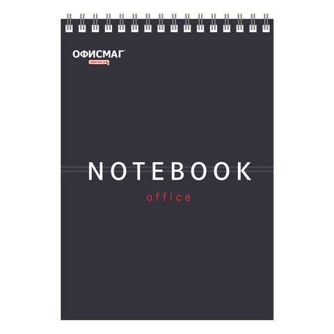 Блокнот А5 146х209 мм, 80 л., гребень, картон, жесткая подложка, клетка, ОФИСМАГ, темно-серый, 129868