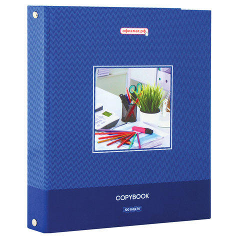 Тетрадь на кольцах А5 (175х215 мм), 120 листов, твердый картон, клетка, ОФИСМАГ, Офисный стиль, 403280