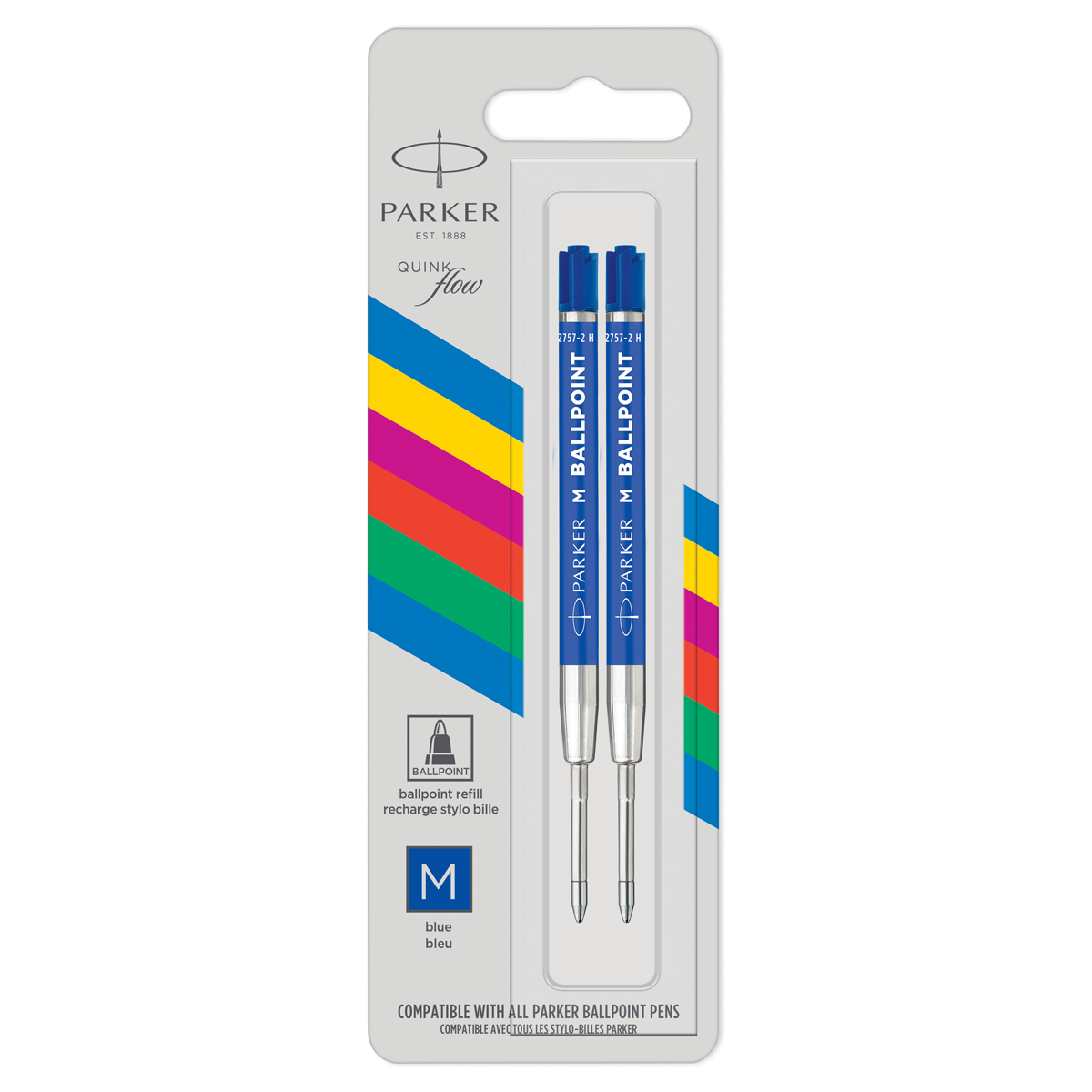 Стержень шариковый PARKER "Quinkflow", КОМПЛЕКТ 2 шт., металлический, 98 мм, узел 1 мм, блистер, синий, 1950373