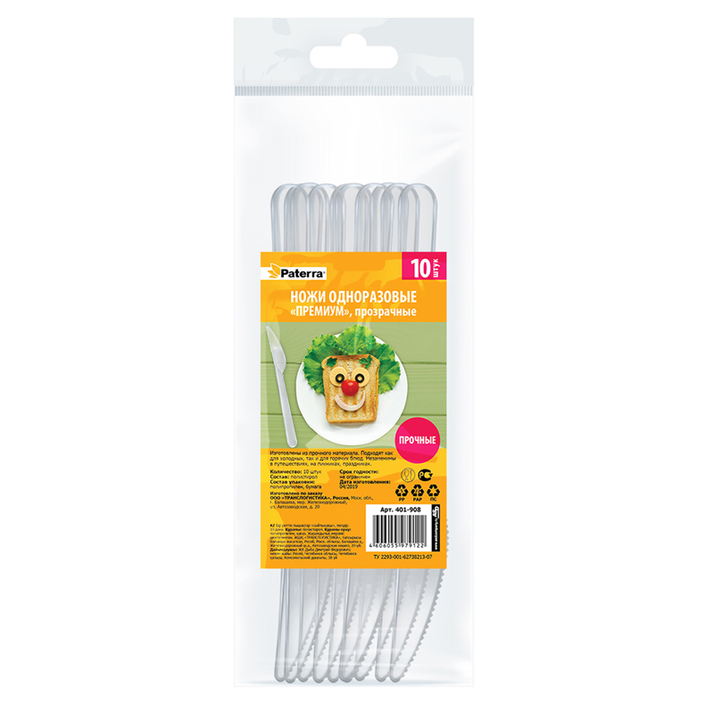 Ножи одноразовые Paterra "Премиум", набор 10шт., прозрачные, ПС, пакет, европодвес