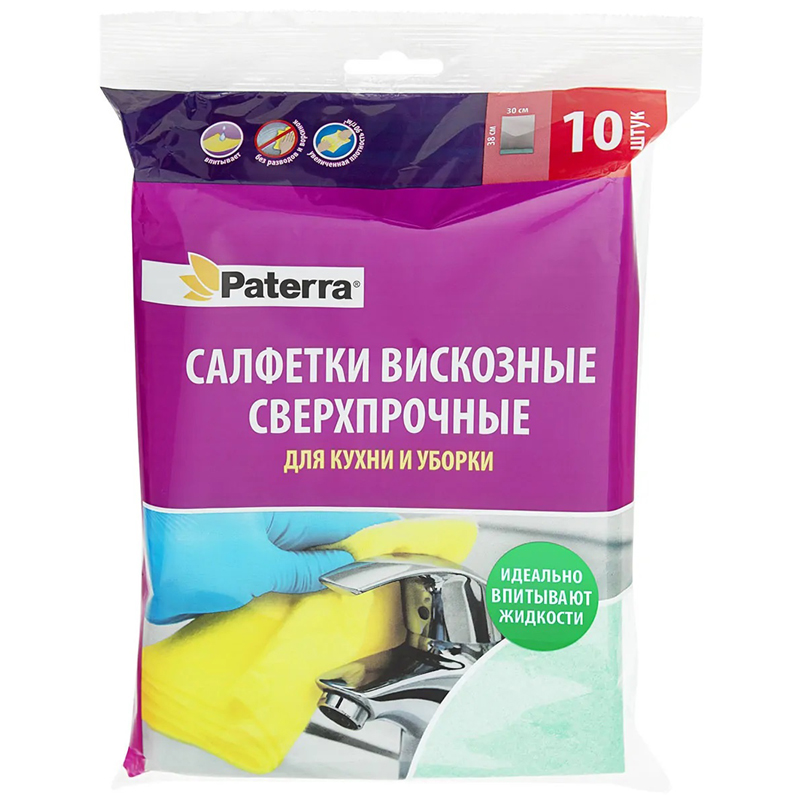 Салфетки для уборки Paterra, набор 10шт., вискоза, 30*38см, 90г/м2
