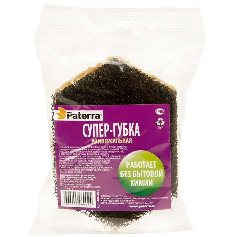 Губка для посуды Paterra "Супер-губка", ретикулированный поролон, 13,5*7*4,3см, 1шт.