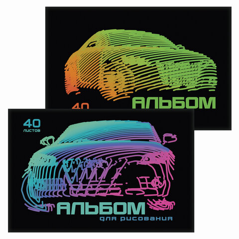 Альбом для рисования, А4, 40 листов, скоба, тиснение фольгой, ПЗБМ, 205х295 мм, "Неоновые машинки" (2 вида), 047866