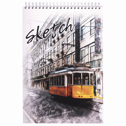 Скетчбук, рисовальная бумага 300 г/м2, 195х300 мм, 20 л., гребень, SoftTouch, брайль, "Трамвай", 97323