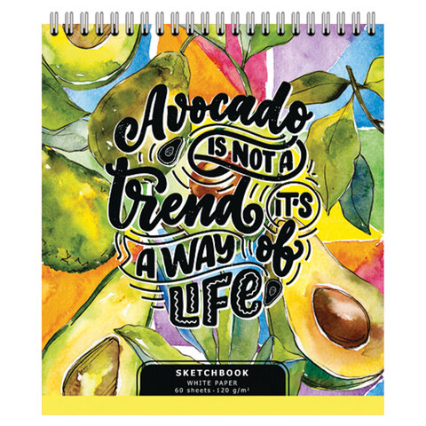 Скетчбук, белая бумага 120 г/м2, 170х195 мм, 60 л., гребень, SoftTouch, выборочный лак, "Авокадо", 97750