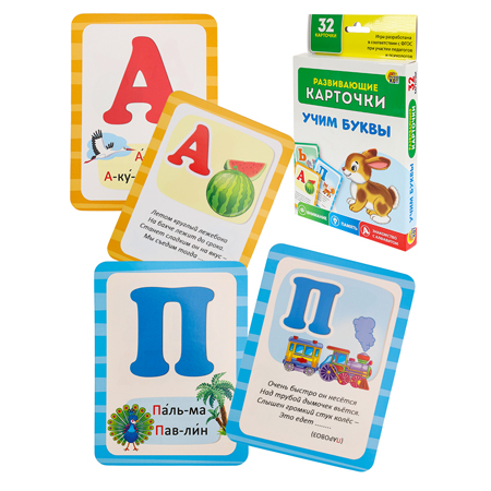 Карточки " Рыжий кот " Обучающие Учим буквы, 32 карточки, картонная упаковка 2*18,5*11,5см