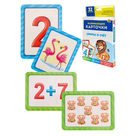 Карточки " Рыжий кот " Обучающие Цифры и счет, 32 карточки, картонная упаковка 2*18,5*11,5см