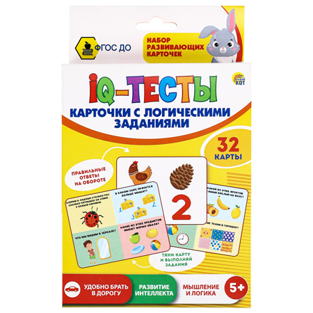 Карточки " Рыжий кот " Обучающие IQ Тесты, 32 карточки, картонная упаковка 2,2*18,8*11,7см