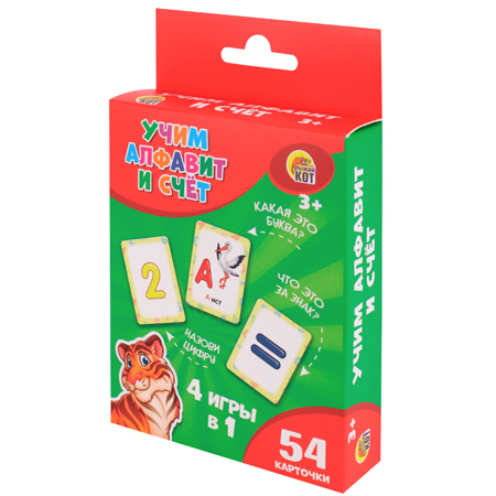 Карточки " Рыжий кот " Обучающие Учим алфавит и счет, 54 карточки
