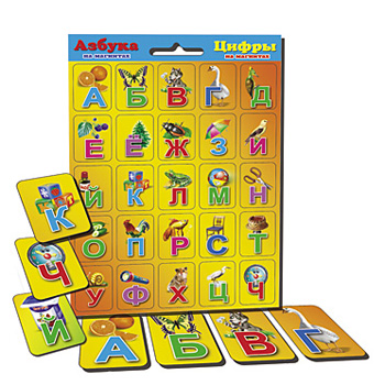 Азбука и цифры на магнитах " Рыжий кот " мини, синяя, состав набора: 50 карточек, полоски магнитного винила, размер изделия: 23*33,5 см (индивидуальная пленочная упаковка)