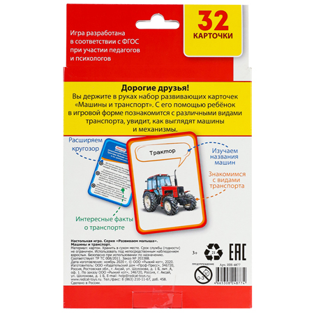 Карточки " Рыжий кот " Обучающие Машины и транспорт, 32 карточки, картонная упаковка 2*18,5*11,5см
