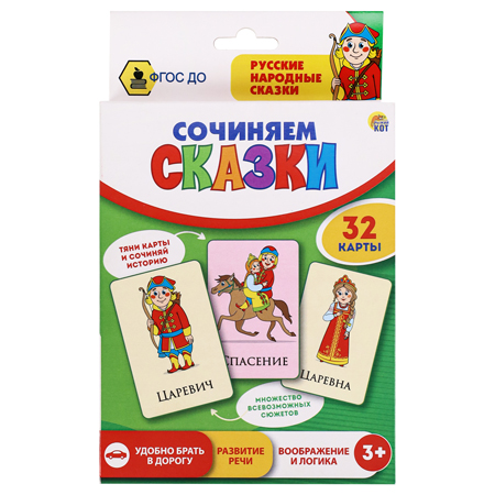 Карточки " Рыжий кот " Обучающие Сочиняем сказки, 32 карточки, картонная упаковка 2,1*18,6*11,6см
