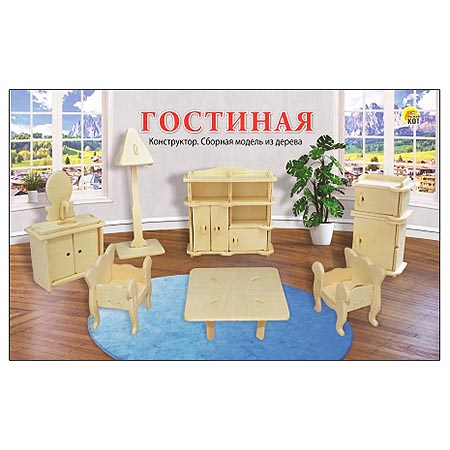 Модель из дерева " Рыжий кот " 2 Big Мебель.Гостиная, состав набора: 2 фанерных листа формата А4 с деталями, в термоусадочной пленке