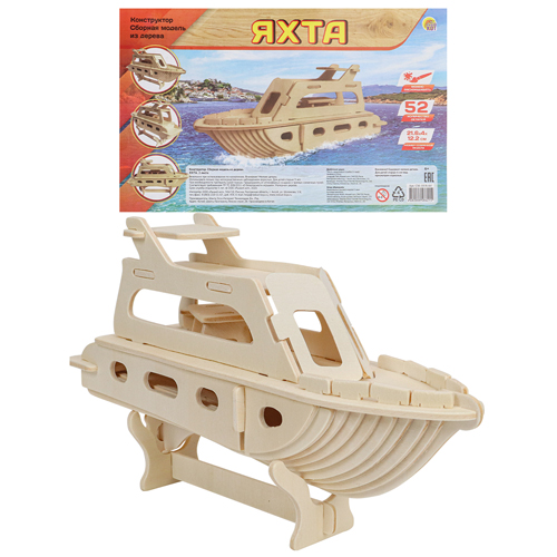 Модель из дерева " Рыжий кот " 2 Big Яхта, состав набора: 2 фанерных листа формата А4 с деталями, инструкция, размер изделия: 21,6*4*12,2см