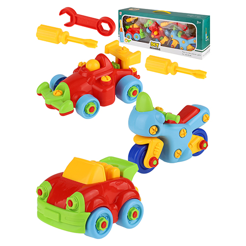 Конструктор " Рыжий кот " Diy Assembled Транспорт 3шт, 2 отвертки, разводной ключ, картонная упаковка 49*11,5*18,5см