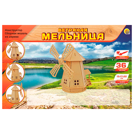 Модель из дерева " Рыжий кот " 2 Big Ветряная мельница, состав набора: 2 фанерных листа формата А4 с деталями, размер изделия 13*17*22см, в термоусадочной пленке
