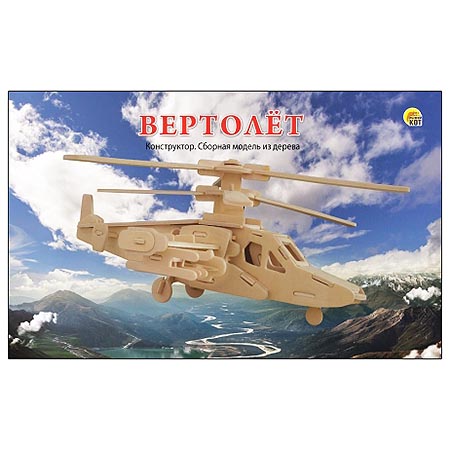 Модель из дерева " Рыжий кот " 2 Big Вертолет, состав набора: 2 фанерных листа формата А4 с деталями, размер изделия 28,7*23,5*10,5см, в термоусадочной пленке