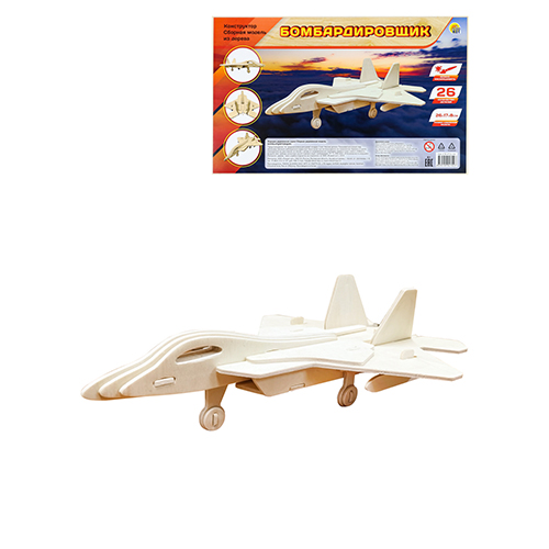 Модель из дерева " Рыжий кот " Бомбандировщик, состав набора: 2 фанерных листа формата А4 с деталями, инструкция, размер изделия: 25,5*17,2*7,8см