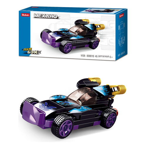 Конструктор " Рыжий кот " Sluban. Механо. Гоночная машинка-2. 48 элементов, пластик, картонная упаковка