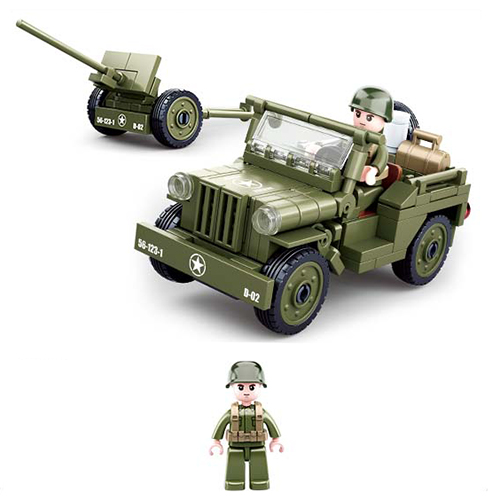 Конструктор " Рыжий кот " Sluban. Военный джип 143 элемента, 1 фигура, пластик, картонная упаковка 23,7*18,9*4,5см
