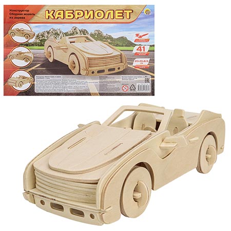 Модель из дерева " Рыжий кот " 2 Big Кабриолет, состав набора: 2 фанерных листа формата А4 с деталями, инструкция, размер изделия: 20*10*6,5см