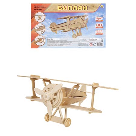 Модель из дерева " Рыжий кот " 2 Big Биплан, состав набора: 2 фанерных листа формата А4 с деталями, в термоусадочной пленке
