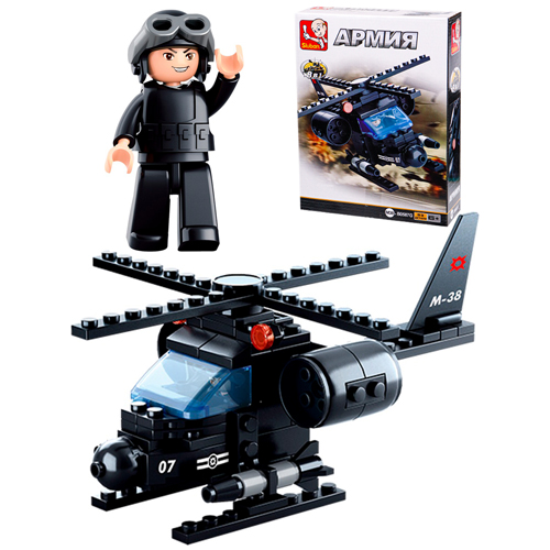 Конструктор " Рыжий кот " Sluban. Армия. Вертолет 8 в 1. 93 элемента, 1 фигура, пластик, картонная упаковка