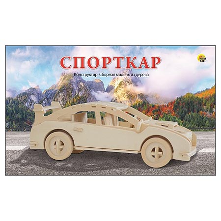 Модель из дерева " Рыжий кот " 2 Big Спорткар, состав набора: 2 фанерных листа формата А4 с деталями, в термоусадочной пленке