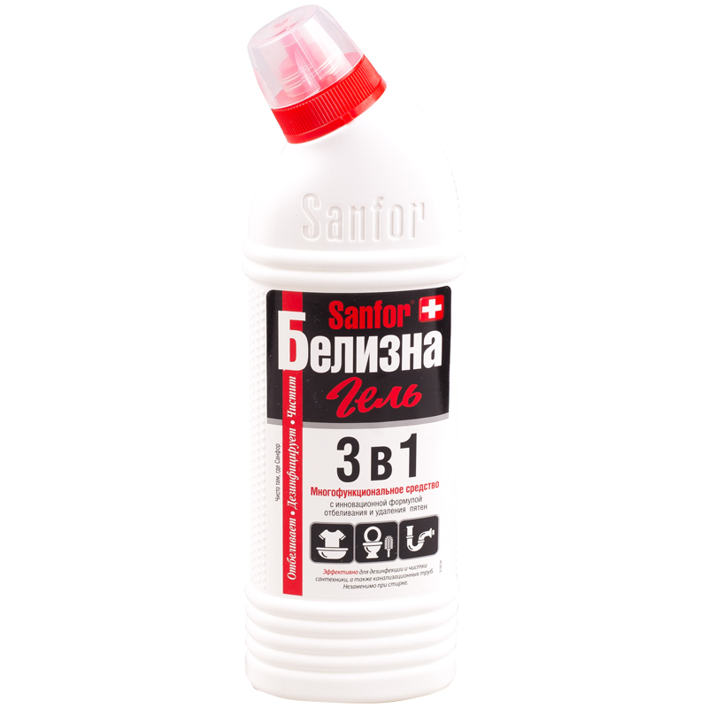 Средство для отбеливания и чистки тканей 700 г, "Белизна" SANFOR 3в1 (Санфор 3в1), гель, 1966