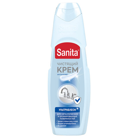 Средство для кухни 600 г, SANITA (Санита) "Ультраблеск", крем для чистки металла, хрома, серебра, фаянса, фарфора, 1786