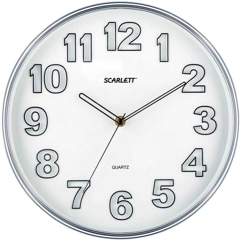 Часы настенные ход плавный, Scarlett SC-55K, круглые, 30,5*30,5*4,6, серебристая рамка