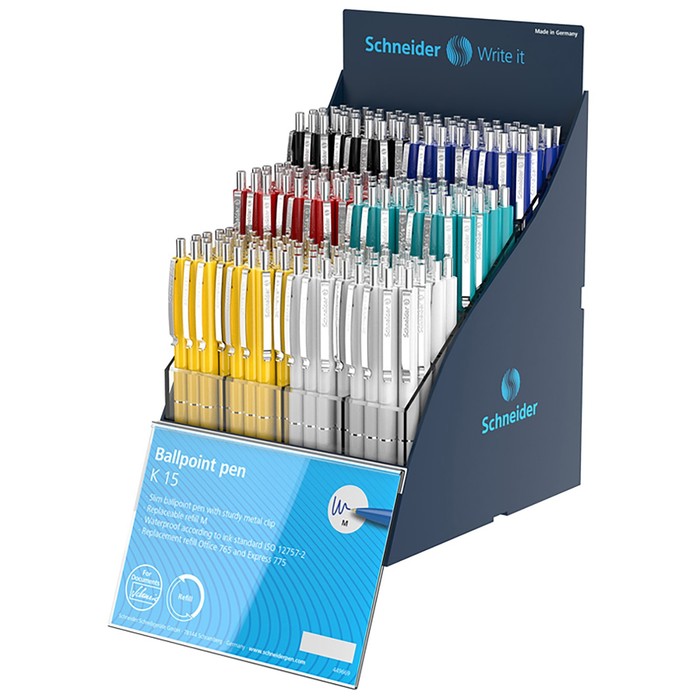 Ручка шариковая автоматическая Schneider "K15", чернила синие, узел 1,0мм, корпус микс, дисплей, под логотип