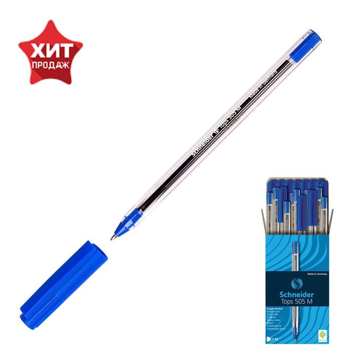 Ручка шариковая Schneider TOPS 505M, узел 1,0 мм, светостойкие синие чернила для документов, прозрачная